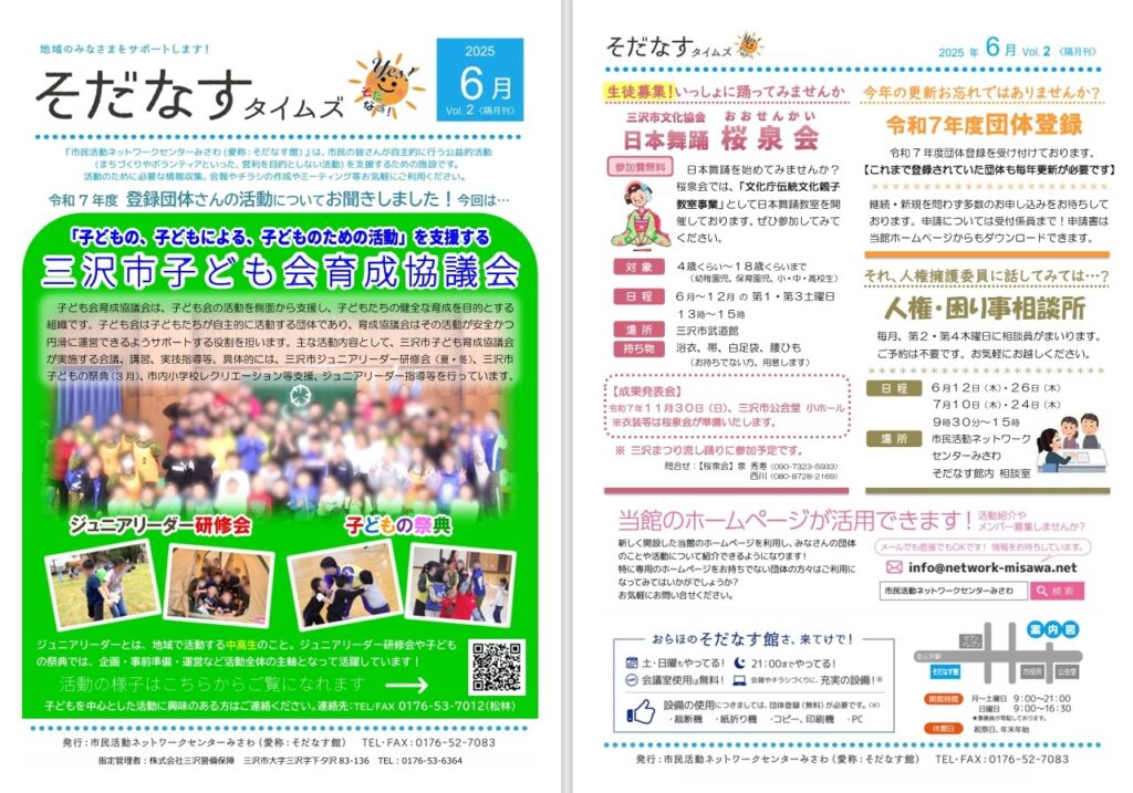 2025年5月27日 / 最終更新日時 : 2025年5月30日 keibi 指定管理者 そだなすタイムズ 令和7年度《Vol.2》6月号 そだなすタイムズ 令和7年度《Vol.2》6月号を発行いたしました! ▼画像をクリックするとPDFファイルでご覧になれます。 そだなすタイムズ令和7年6月号